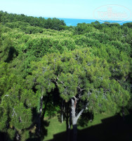 Поселили, как просили - стандарт на последнем этаже с панорамными окнами и видом на сосны, бонусом стал частичный вид на море.