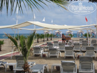 Пляж: очень много шезлонгов, и домиков бали (домики за плату). Детские горочки (для очень маленьких) батут. На пляже мелкий песочек. Первые пару дней море было холодноватое, но потом с каждым днем все теплее. Накупались вдоволь. (не понимаю немцев которые валяются возле бассейнов).