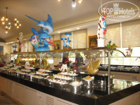 Итак продолжим...: после того как распаковали чемоданы и немного, отдохнув пошли в основной ресторан позавтракать .......ребята!!! я такого разнообразия завтраков ни в одном отеле не видел, хотя мы всегда выбираем неплохие "пятерки", но здесь , это просто сказка,!!! семга слабосоленая, скумбрия холодного копчения, еще какая то вкусная рыбка, свежий мед с пасики в сотах, яйца вареные, жареные, амлеты всякой нарезки колбасы сортов 10, вареное мяско, арбузы, ананасы свежие, бананы яблоки, персики, куча всяких хлопьев с молоком и всякими детскими сухими завтраками, натуральный кофе, свежевыжатые соки сортов 7 наверно, целый сырный уголок там тоже куча сортов сыра и многое другое. И это только завтрак!!! Про обед и ужин вообще описывать не буду, не хватит места) скажу одно - всевозможного мяса рыбы и салатом в изобилии ну кроме свинины конечно,!! При чем некоторую рыбу, такую как дорадо или семгу жарят при тебе свежую! Короче говоря, я даже половины не успел попробывать. Очень все вкусно и качественно приготовлено!! И каждый день разная кухня или какой нибудь праздник. Мы очень остались довольны меню, даже моему "привереде -сыну" все понравилось. Официанты молодцы- летают как пчелки, приносят по твоему заказу различную выпивку).