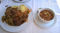 Отдыхали с семьей с 15 мая по системе все включено. Ох уж эта система)))) Про питание можно писать отдельный пост. Меню разнообразное, каждый день что-то новенькое. Мясо, индейка, курица, рыба, свежайшие мидии, овощи гриль, гарниры, национальные блюда, супы-пюре. На сладкое- это что-то совершенно удивительное! Как же стараются повара и кондитеры, чтобы каждый день радовать своих посетителей! Сладости, как в большой кондитерской! Хочется все попробовать, даже если набрать по маленькому кусочку каждого блюда, то в итоге неизбежно объедаешься)))))) Фото приложила к статье))) Мы попали на сезон клубники, чему были несказанно рады))) Отдельное спасибо за вкусные омлеты, блинчики и пончики с шоколадом!!!