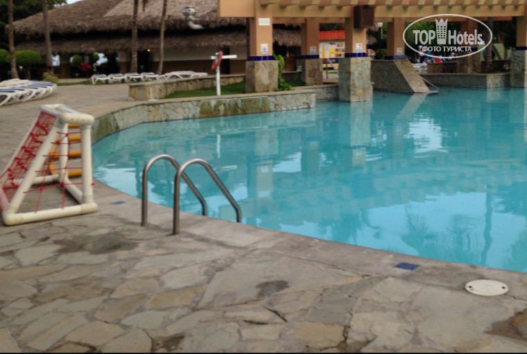 5)Пляж - частный песчанный пляж, лежаки ,зонтики были платно (3у.е.), но есть пальмы))Слева за территорией есть местный пляж ,туда мы не ходили.Первую неделю у нас был зеленый флаг, спокойный океан и жаркое солнце.На второй недели погода немного расстроилась, четыре дня были дождливыми ,т.е. во второй половине дня был кратковременный ливень и тучи , усилился ветер и были приличные волны.Но многие купались.Есть три бассейна и три джакузи. Есть два детских бассейна.