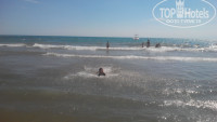 Море для детей подходящие ,мелкое,песочек.Лежаки и матрасы БЕСПЛАТНО.Правда лежаков больше, чем матрасов. До пляжа возит автобус каждые 10 минут.На пляже есть бар,мы там не ели, про ничего сказать не могу.Говорили лепешки там вкусные.