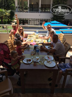 Доброго времени суток. Отдыхали в количестве 13-ти человек, в конце мая. Среди нас были и дети и младенцы и бабушки и родители. Питание нормальное. Все были сыты. Всегда есть мясо, рыба, диетическое меню и всё для детей, включая молоко в пачках, блендер и отдельные столики. Территория хорошая, просторная, но в то же время всё в доступности. Удобно. Активно работает детский клуб. Вход в море очень сложный. Камни. Рекомендую специальную обувь. Нас поселили в отдельный корпус 601,602,603 на первом этаже. Пол холодная плитка. С детьми очень не удобно. Просили пересилить в номера с ковром даже с доплатой. Бесполезно! Отель заполнен говорили нам. В итоге дети все засопливили. И ещё! В одном номере был чайник в другом халаты в третем ничего! Даже сейфа и пледов. Зато в другом стояли два сейфа! Бардак! Всё нужно просить. И желательно несколько раз. Детские кроватки дали (раскладушки, как манежи, но дно не на всю длину почему то) Уборка в номере тоже заслуживает отдельного внимания. Отдыхали мы много раз в Турции, но такое впервые! Убирается молодой парень, который и тряпку держать не умеет. Полы не промыты. Грязь размазал, полотенца поменял, мусор выкинуть забыл и пошёл! А пару дней вообще не убирался. Мы сами выбросили мусор, взяли чистые простыни и полотенца из тележки и сами мыли пол! Жаловаться ходили, а толку.... И ещё! ВНИМАНИЕ РУКОВОДСТВА ОТЕЛЯ!!! ВОЗЛЕ 601-го НОМЕРА ПОСТОЯННО ОТКРЫТА ДВЕРЬ В ХОЗ. КОМНАТУ! Там сразу горка вниз и торчат из стены провода пучком! РЕБЁНОК МОЖЕТ ТУДА УПАСТЬ! Тоже жаловаться ходили...(хотя мы этого делать не любим). Но мы старались не зацикливаться на таких моментах. Мы же приехали отдыхать. Поэтому ходили на вечернюю анимацию. Аниматоры молодцы. Стараются сгладить плохие впечатления о отели. Вывод: Потенциал у отеля есть, но порядка не хватает. Нам не хватило комфорта. Если приведут номера в порядок, подберут персонал, который будет качественно работать, то отель вполне можно будет рекомендовать для семейного отдыха с детьми.
