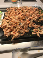 На ужин тот же набор и были креветки, суши, тарталетки и национальные блюда.