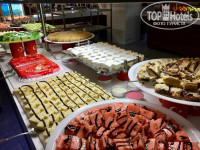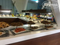 В отеле в основном русские и турки. Турок конечно везде обслуживают в первую очередь, впрочем, как и наверно во всех отелях Турции. Мы были в мае, казалось бы не сезон..., но вот если пойти на ужин к началу, то нужно будет выстоять в очередях за едой. (Очереди конечно же там, где мясо) , боюсь даже представить , что же там происходит в июле-августе))). Шезлонгов хватало, и на пирсе ,и около бассейнов можно было найти свободные. По поводу питания могу сказать так же , как практически во всех предыдущих отзывах : голодными не останетесь! Можно конечно найти, что поесть. Рыба редко , мясо всегда было, салатов масса. Из фруктов только яблоки и апельсины, несколько раз были абрикосы, но нам не досталось. Клубника, черешня, арбуз около бара на море - платно! Выбор сладостей, по сравнению с другими турецкими "пятёрками" скудноват, но оно и к лучшему) фигуру нужно беречь))). Но те сладости, которые были, конечно вкусные, с этим не поспоришь. В баре на пляже с 12 часов можно перекусить пиццей, бургером, хот-догом, картофелем фри, салатиками, супчиками. С 16 до 17 в этом же баре картошка запеченая. Мороженое с 14 до 15 на пляже в баре ,а с 15 до 16 около бассейна. Везде стоят аппараты с кофе, чаем и соками типа "юппи". Пиво неплохое, по остальному алкоголю не могу ничего сказать - не пробовали. Ходили в Османский(Турецкий) ресторан : оооочень много всего нам принесли, очень вкусно всё - рекомендую! Обслуживание никакое! За 9 дней пребывания в отеле , за ужином ни разу не подходили официанты не спрашивали ,что мы будем пить, как обычно это бывает в других отелях. Анимация есть, ребята стараются. Несколько раз ходили на вечернее шоу, приезжали акробаты, выбирали лучшую пару...вообщем было интересно, только очень холодно вечерами) И напоследок хотела еще написать про ОГРОМНЫЙ минус отеля, о котором пишут в каждом отзыве - это платный интернет! На одно устройство на неделю 11 долларов и работает этот интернет не везде! Вообщем это очень достойная и твёрдая "четверка", но никак не "пятёрка" к сожалению.... Но опять же, все зависит от того, с каким настроением вы поедете отдыхать! Вернулась бы я в этот отель? Скорее всего нет!