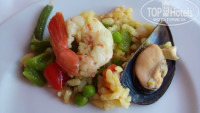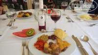 Обслуживание в ресторане на очень хорошем уровне, очередей нет. Белоснежные скатерти на завтрак, обед и ужин! Столы для вновь пришедших убираются и сервируются мгновенно. Вино на обед и ужин приносят в бутылках на выбор и открывают при вас. Еда просто замечательная и разнообразная! Кролик, утка, баранина, говядина, свинина, 5 видов рыбы!!!! Всё очень вкусно! Из фруктов: клубника, арбузы, дыни, персики, абрикосы, киви, ананасы, яблоки, груши. Курага, чернослив, финики…