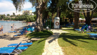 Пляж просто великолепный!!! Чистый и ухоженный! Он огромный( на фото этого не видно), много лежаков в тени пальм на зеленой лужайке! Заход в море –песок! Большой бар-ресторан на пляже. Спуск к пляжу от корпуса метров 250, он несколько крутоват, для пожилых людей и маленьких детей трудно подниматься и спускаться! Но ходит машина от корпуса к пляжу и обратно.