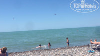 Лежаки и зонтики платные, примерно 75 руб за день(комплект) но многие загорали на гальке =)