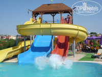 Отдыхали в отели с мужем. Поставила оценку 4+ т.к. вцелом отдых понравился, но у отеля есть и небольшие минусы. Приехали мы в отель утром. Очень хотели номер с видом на море, поэтому согласны были подождать до 13 часов пока он не освободится. Переоделись в туалете на 1 этаже, поели и пошли плавать и загорать. Кстати в этот день в Сиам приехали только мы и милая девушка Яна из Санрайз тур еще в машине сказала, чтобы мы не переживали отель нам должен понравиться :) В отеле много детей разного возраста и национальностей. Немцы отдыхали с 3-х месячной дочкой она даже не переворачивалась еще, но с удовольствием спала в тени от зонтика :). Очень пожалели, что не взяли с собой ребенка. Можно сказать, что отель семейный. Отдыхают целыми семьями. Хотя есть и молодежь, в основном девушки лет 20 приезжают с подругами.Территория отеля небольшая, но удивительно все удобно расположено. Окна номера выходили на соседний отель Vera Сlub Hotel Mare 5 по сравнению с соседом территория Siam более продумана и удобная. Номер просторный и красивый. Впечатлило окно в душе с видом на кровать. Кровать большая на 3 человек :) Недостаток номера - крючки и держатели привинчены кое-как того и гляди оторвутся. Сантехника в ванной дешевая. Если бы заменили ее и прикрутили все качественно было бы отлично! Бассейн разделен на несколько частей мостиками можно купить в магазине отеля маски и кольца и плавать под мастиками и собирать кольца на дне. Дети вообще не вылезали из него до самого позднего вечера. Молодежь в основном отдыхала у моря и на платформе с подушками у бассейна. Вообщем, благодаря разделению бассейна на несколько частей никто никому не мешал дети резвились в одном месте, анимация в другом, подростки играли в мяч и брызгались в третьем. Для маленьких детей есть свой бассейн с горкой "Слоник" но они прямо на надувных кругах залезают на большие водные горки и катаются вместе со взрослыми. Очень понравились водные горки. Они не высокие но скорость дают приличную и в очереди почти нет, все быстро залезают и скатываются. Для тех кто не умеет плавать - попробуйте скатиться с желтой спирали, при входе в воду она замедляется и можно быстро встать на ноги. Настоящая достопримечательность отеля Амфитеатр, вечером анимация там проводит различные шоу, но музыку не так слышно на территории отеля из-за того, что она поглощается стенами данной конструкции. Посмотрели шоу Майкл Джексон "Приведения" Аниматоры конечно молодцы, несмотря на то, что танцы Майкла Джексона очень сложные и их трудно повторить, справились весьма достойно для самодеятельности. При входе на пляж. Мини-гольф. Играли в первый раз. На первый вгляд просто закинуть шарик в лунку. Но с первой попытки далась только лунка № 2 остальные оказались сложнее - проиграли минут 30 пока не нашли верное направление удара. Пляж достаточно большой и чистый. Но на нем мы почти не отдыхали. Больше нравилось днем отдыхать у бассейна, в теньке от зонтиков. Зонтики там на колесиках и их можно передвинуть в зависимости от движения солнца. У бассейна лежаки нужно занимать часов в 8-9 утра. Иначе придется идти на море. Море чистое, но не всегда спокойное. Часто штормило и все сбегались покататься на волнах. На пляже должны жить черепашки, но за 7 дней не одной не видели. Пляж в основном песок и мелкая галька разделенный полосой из крупных камней. Питание в 