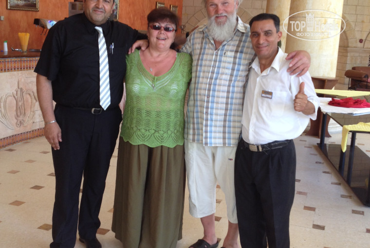 Отдыхали первый раз в Тунисе. Мы пара довольна немолодых людей) Нашли то, что искали для себя. Отель тихий, ненавязчивый сервис, чистота на пляже. Внимательный, доброжелательный персонал;Мустафа-директор на фото он в черном,с противоположной стороны бармен к сожалению не помню имени.Ну и с бутылкой вина- Мухамед ,сами видите комментарии излишни. Гест рилейшнз- Татьяна в обнимку с девушкой из магазина Оксаной. Про Тито и Твистера ,ребят из анимации,написано достаточно.Не одного человека из работников этого отеля не видел с мрачным лицом,несмотря на то что у них праздник Рамадан.Пляж охраняется.Есть постоянный охранник. Он же и убирает пляж и следит чтобы торговцы ходили только по кромке воды не приближаясь к отдыхающим,также курсируют вооруженные полицейские. Минусы тоже есть-это к сожалению,некоторые соотечественники.. Но это другая история. В обшем нам с супругой понравилось и мы благодарны. персоналу отеля за их работу. В следующем году хотим снова посетить отель Браво Монастир уже на более длительное время.