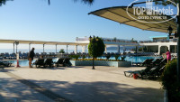 Отель расположен в весьма живописном месте. Море – чистейшее, вода прозрачная. В мае была освежающе-бодрящая. Но мы купались. Пляж мне понравился. Песок и галька. Заход в море – сразу глубина. Я сама очень люблю плавать и плаваю хорошо и этот пляж и заход в море- все по мне). Море не мелкое, заходишь – постепенно нарастает глубина. Буйки достаточно далеко, можно вволю поплавать. Есть понтон. Там можно загорать (стоят лежаки) и попрыгать с понтона, глубина позволяет. Лежаков хватало всем. Территория отеля небольшая, но очень уютная и зеленая. Красивый сад с соснами, цветы, кактусы – вся растительность радует глаз. За садом тщательно ухаживают. Вообще хочу отметить персонал отеля- приветливый и старательный) Возможно не хватает профессионализма, но нам это не мешало) Люди делали свою работу. Контингент отдыхающих- это россияне, украинцы и в выходные приезжают турки.