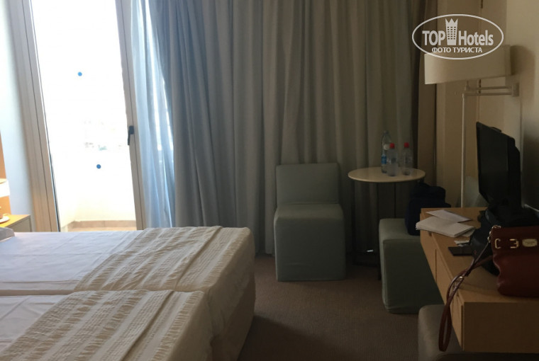 Номер у нас был стандартный с боковым видом на море. Номер очень маленький, не новый, балкончик очень узкий. Сбоку вдалеке море, прямо и с другого бока вид на улицу, автостоянку, аттракционы. Правда в номере все работало, был очень хороший wi-fi (видимо потому, что находился над ресепшн), фен, чайник, чай, кофе, сливки, сахар. Мини бар платный. Сейф бесплатный. Убирали каждый день, правда не могу сказать, что очень тщательно, но нас это не смущало.