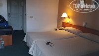 Заселение: так как самолет задержали в отель приехали поздно, и на ужин опоздали. При заселении на рецепции выдали ваучер на ужин в пиццерии в другом, напротив стоящем отеле одной сети Globales. Туда мы не пошли, так как очень устали, да и ужинать после 12 ночи не хотелось. Сам номер (366) на третьем этаже с видом на бассейн, чему мы были рады. Номер очень маленький, примерно 14 метров. Две вместе составленные кровати, две малюсенькие прикроватные тумбочки, стол с зеркалом и маленькое кресло. Мебель старенькая, но не разваливающаяся. На стене маленький плоский телевизор. На потолке старый потолочный вентилятор. Ванная комната ну ооооооочень маленькая, думаю, что лилипутам в ней было бы тесно( душевая кабина70см х 70см, раковина и унитаз). Балкончик тоже малюсенький треугольной формы, вмещает два пластиковых стула и маленький табурет, типа столика.