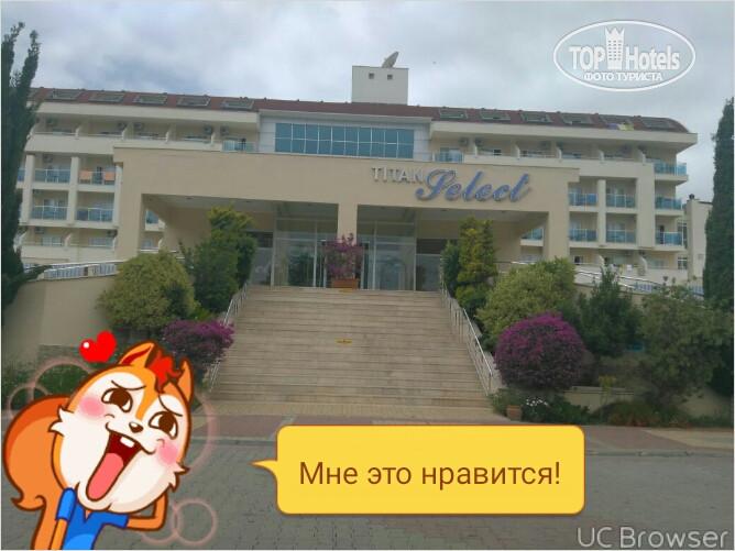 Дорога до отеля заняла около 2 с половиной часов, мы были последние. Дали сух поек, потому как приехали поздно. Но если честно сух паек никакой, сок пить точно невозможно. Вид из номера нам не понравился мы спустились и попросили поменять, но нам сказали можно только завтра после 12. Кондиционер там не работал было душно. Утром поговорили с гидом и она нам поменяла на другой номер. Мини бар в номере обновлялся, фен работает только ставить защёлку надо на мин не на максимум иначе он будет быстро отключаться и не включится пока не остынет. Телевизор мы не смотрели, шампуня нет в ванной только гель в дозаторе. Холодильник работает только пока вы находитесь в номере, при выходе из номера все вырубается и телефон на зарядке можете не оставлять все равно питания нет в номере ни свет ни розетки ничего не работает без ключ-карты номера. Персонал смотрит на вас как на денежный мешок и каждый раз ждёт чаевые, не очень-то они любят русских, зато за немцами и поляками бегают все приносят. Анимация слабая вечером есть представление в 9:45 для взрослых для детей на час раньше. И аквааэробика тоже есть анимация вся проходит на территории Титан гарден можно пользоваться как баром селект так и гарден хозяин один. Дискотека есть до часу, но музыка там никакая никто не танцует, просили поменять, но диджей в ковычках, сказал хозяин не разрешает и бла бла... Мы ходили в Саммер гарден аниматоры собирают всех кто хочет на дискотеку в 12:30 вечера и ведет, вход бесплатный там не ведитесь на ваших гидов, которые обманывают и говорят про 15$ вранье). Брали экскурсию демре кеково памукале 2 дневная 120$ она стоит того и берите не по отдельности а именно на 2 дня, если брать отдельно памукале, то попадете в самый пик, когда будет много народу и везде будут очереди. Когда поедете в храм там будут дорогие иконы выйдете и там будут обычные продавать подешевле. Обязательно искупайтесь в бассейне Клеопатра. И ещё немного про отель там много немцев и не очень они любят русских не забыли, видимо, про поражение))). Не буду рассказывать подробно но был инцедент. Территория не такая уж и большая. С заходом на пляже аккуратно, есть плиты, особенно если будут волны заходите аккуратно. Питание нормально но есть очень острые блюда, поэтому сначала пробуйте, чтоб не бегать потом как огнедышащий дракон. В общем то не очень нам там были рады и больше мы туда не поедем. Этот отель больше подойдёт семейным людям и пенсионерам, скучновато там.