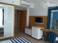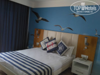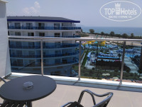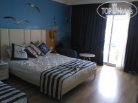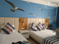 В отель мы приехали 10.06.2017 около 10.30 утра нам одели браслеты и отправили позавтракать в Бургер Ленд. Перекусив мы подошли на рецепцию и спросили нет ли свободных номеров. Нам сказали, что стандартов пока нет нужно подождать, но нам предложили фемели за доплату, а так как нас приехало 2 взрослых + 2 детей (16 и 11 лет) нас это даже очень устроило. Мы немного поторговались и за 10 ночей отдыха доплатили 60 $, о чём ни разу не пожалели. Номер отличный двухкомнатный, просторный (на фото). Вид из номера также очень порадовал. При заселении у нас в номере было только 2 больших полотенца, 2 маленьких и одно ножное, но мы подошли на рецепцию и нам сразу принесли недостающие комплекты. Мини бар бесплатный вода, фанта, кола - пополняли каждые 2 дня. В номере был чайник, чашки, кофе, сухие сливки, чай, сахар - это тоже пополнялось. В номере у нас убирали каждый день, полотенца меняли каждые 2 дня. Средство гигиены (шампунь, мыло, гель для душа, ушные палочки) доставляли по мере их использования. Мы оставляли чаевые.