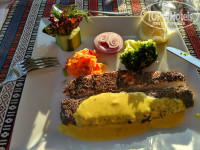 Питание нормальное. Каждый день в обед и на ужин была рыба на гриле, курица, индейка. Были разные супы. На завтрак блинчики, каши, нарезки колбасы, сыра, овощей, соления, оливки и т.д. Можно было делать тосты и сендвичи. Еды хватало. Единственное, чтобы было поменьше людей то нужно ходить на завтрак пораньше, а вот на обед и ужин через 30-40 минут после начала. Чтобы самые голодные и дикие уже ушли или уселись. Еду доставляют. Нет такого, что если закончилось какое-то блюдо, то его потом нет.