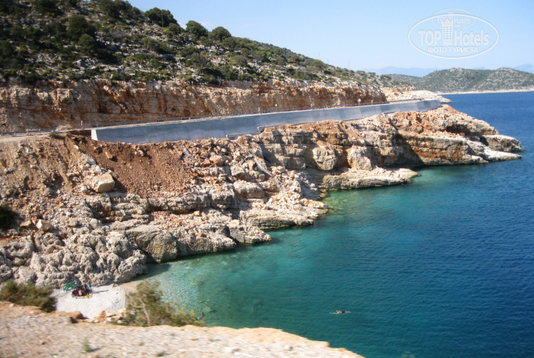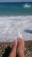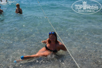 У отеля есть собственный пляж, однако до него еще надо дойти)) Отель расположен на 2 линии моря, и чтобы оказаться на пляже, нужно пройти территорию отеля, выйти на улицу, перейти дорогу, и идти прямо вдоль других отелей. Дорога занимает минут 10-15 прогулочным шагом. Пляж довольно маленький, но так как и отель небольшой, то лежаков хватает всем. Пляж галечный, так же как и вход в море. Так что для купания лучше приобрести специальную резиновую обувь (продается повсеместно, стоит не дорого - рублей 200 на наши деньги).