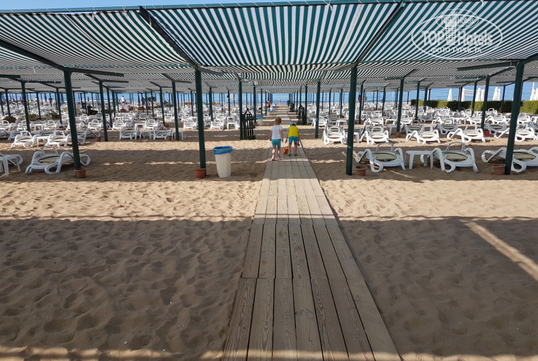 Пляж очень широкий, чистый, пологий заход в море. И море очень теплое, всё время отдыхаем в начале июня, нигде не встречали такой температуры, ни в Греции, ни в Испании, ни на Кипре. До моря ходит шаттл))) трактор с прицепом, есть там один водитель, который на тракторе дрифтовал... Пешком 7 минут спокойным шагом.