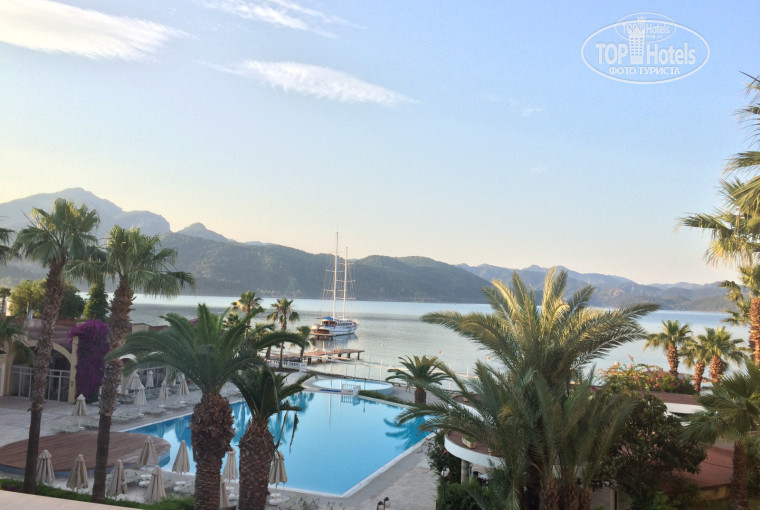 Отдыхали в июне 2017 с детьми, туроператор Пегас. Приехали ночью (дорога от аэропорта где-то 2,5 часа), заселили быстро, номер семейный на втором этаже с видом на море. Отель понравился, тихое, спокойное место, вокруг сосны, горы и море, виды шикарнейшие. Территория большая и красивая, везде чисто, постоянно убирают и следят за чистотой. В номерах тоже хорошо убирают. Питание разнообразное, на любой вкус. Мясо было каждый день, из фруктов - яблоки, апельсины, нектарины, абрикосы дыни и арбуз. Мороженое в 16-00. Отдыхают в основном русские и украинцы. Персонал отеля вежливый и внимательный. В отеле есть горки, детская площадка. Из минусов комары в номере, осы в ресторане на улице и постоянно пропадающий wifi. В целом все понравилось, отдыхом довольны!