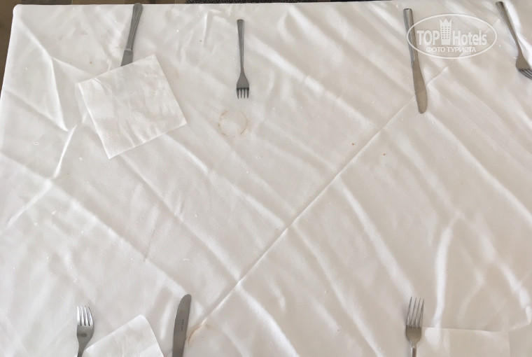 Это просто полный П. Официанты огрызаются, а иногда откровенно хамят клиентам, кладут Грязные приборы на Грязные столы. Я специально сфотографировал накрытый стол, обратите внимание на эту фотку. Постоянные очереди за всем. Не хватка тарелок, ложек, стаканов. Кстати проблема со стаканами везде. В Барах на пляже и у ресепшена, в столовых (да именно столовых) и лобби барах. Вы можете простоять в очереди за водой, но на вас кончаться стаканы и бармен пойдет собирать их со столов, лежаков, земли и.тд., и слегка ополоснув водой налить в них напиток для Вас. Где этот стакан валялся и кто из него пил до вас, да какая разница?! Неужели нельзя купить обычных пластиковых стаканов и наливать в них? Можно, но зачем?