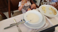 Еда в отеле нормальная-не больше, рыба все время то пересоленая, то недожаренная, любители рыбы были недовольны, морепродуктов практически не было за исключением риса с мидиями и кальмаров в соусе 1 или 2 раза. Суп почти всегда с перцем, детей не накормить, 2 раза за 3 недели был вкусный овощной и раза 4 был куриный с рисом.
