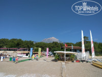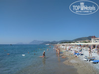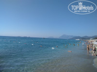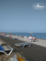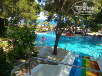 1$. Горки есть, включают 2 раза в день, до обеда и после. Море рядом с лежаками, пляжные полотенца дают. У соседнего отеля (Гюрал)есть классный пирс с душевыми и лестницами в море. Оттуда мои девчонки ныряют, когда нет волн. У другого соседнего отеля Марти Мира есть яхта, на которой катают в море. Мы ездили на 3 часа, что гораздо удобнее, чем на целый день. Купались в двух диких бухтах и покатались вокруг 3 островов, которые видны в море. Видели водопады, падающие в море.