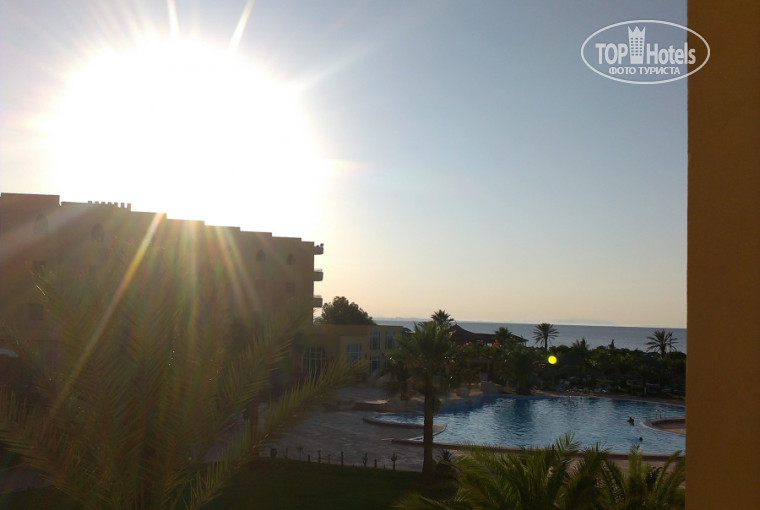 Территория отеля не сильно большая, но красивая и аккуратная, зелень, пальмочки, два бассейна, один на улице, второй закрытый, но в них мы не плавали, т.к. приехали на море! Три бара: у бассейна, внутри отеля и на пляже. Бар на пляже - это отдельная тема. Так случилось, что наш отдых совпал с мусульманским постом Рамадан, и пока он не закончился все было хорошо. Бар работал целый день, можно было брать любые напитки в течение всего дня, а вечерами там проводилась анимация. Как только закончился Рамадан, в отель заехало очень много местных, так сказать отмечать праздник, и бар на пляже превратился в место их тусовки, т.к. они платят деньги-они и хозяева положения. Не помню точно со скольки, где-то часов 16.00 бар работал только на них, что для остальных отдыхающих не очень удобно, т.к. приходилось идти за напитками в бар около бассейна.