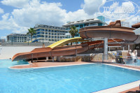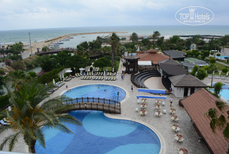 Отдыхали большой компанией в период с 18 июня по 29 июня. Нас отдыхало 9 человек в том числе трое детей 13, 8, лет и 1,6 годовалый малыш и еще двое пожилых родителей. Приехали 18 июня ближе к вечеру, разместили быстро, претензий нет. У нас было три номера: два семейных-двухкомнатных (5508 и 5505) и один стандарт(4211). Вид из семейных номеров был шикарный на территорию отеля с бассейном, амфитеатром и морем, в стандарте был вид не очень, но родители не привередничали. О своем шикарном виде я немного пожалела в дальнейшем.