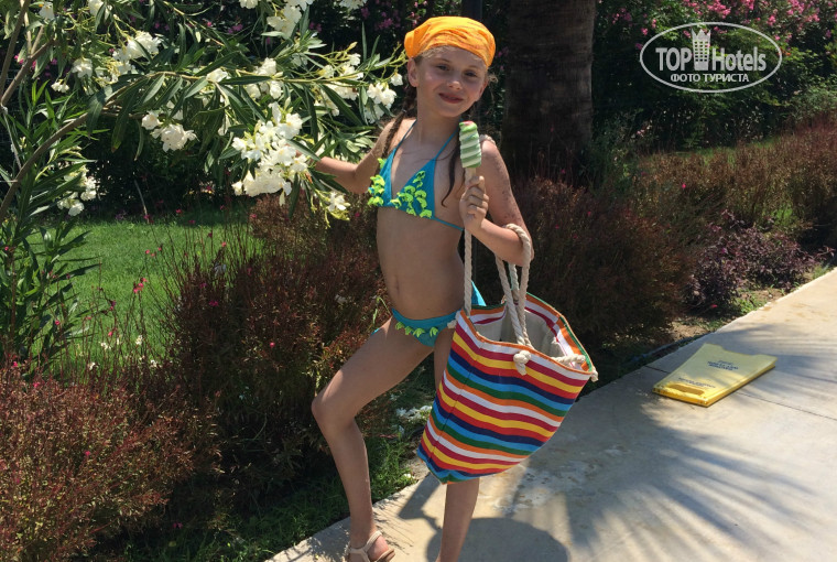 Отдыхали семьей с ребенком 9 лет. В отель приехали около 9 утра, заселили в 10-30, хороший прием, чувствуется организованность персонала, не надо никуда ходить-подходят сами, все объясняют. Перед заселением успели позавтракать, осмотреть близлежащую территорию. Территория не большая, но хорошо спланированная, имеется "закольцованный" бассейн, т.е. можно плавать по кругу, если точнее по квадрату, сжигая калории и любуясь открывающимися пейзажами. Есть небольшой аквапарк, как мы его назвали "юниор",т.е. для детей школьного возраста, но в принципе, им можно пользоваться и взрослым. Адреналина, конечно, не получите, но настроение поднимите. Имеются и "лягушатнички" для мелкоты. Очень понравились официанты рассекающие на роликах, очень мобильно обслуживающие отдыхающих. В спиртном сильно не разбираюсь - комментировать не буду. Напитки почти все бутилированные, пакетированные, никакой бадяги.