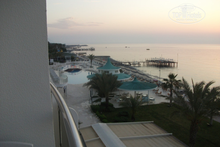 Перелет и дорога до отеля без проблем.Спасибо Тез-Тур.В отель приехали в 21-30.Втечении 10 минут заселили в номер на 2м этаже с видом на море(бронировали заранее) Пошли поужинали,ужин формально до 21 часа,но работает функция ночной перекус.Так что без проблем.Номер чистый,уборка и замена белья регулярна ТВ..Три или четыре русских канала.ВайФай работает даже в номере.Питание очень приличное.Говядина,баранина,индюшка,курятина.Очень большой выбор морепродуктов.Много овощей фруктов.Каждый день,арбузы и дыни.В баре недурные вина..Водку не пробовал-жарковато.Территория небольшая ,но очень ухоженная.Много зелени.Два бассейна.Один с горками.Ежедневно с 14 до 16 мороженое. Море очень чистое и спокойное.Правда дно мелкая галька и заходить в воду немного некомфортно,легко решается при помощи специальной обуви для купания.Можно купить в магазинчиках в цокольном этаже отеля.Каждый вечер дискотека и выступления заезжих артистов.Дважды за отдых была турецкая ночь.Очень вежливый и предупредительный персоналСловом отдыхом остались довольны