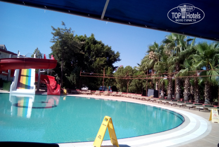 Отдыхали с женой,изначально должны были жить в другом отеле этого же владельца,но там номеров как то странно не оказалось.перевезли с нервами в евритайм.Територия очень даже красивая,как для 3* , номера тоже приятные, бассеин с двюмя горками отличный. А теперь о плохом:Вокруг бассейна лежаки , деревянные и старые,без подстилок.Еда просто ужас,мало и невкусно,ни мяса ни рыбы ни сладостей-Совсем небыло!!! Бар который должен работать с 10 до 22 работал не всегда.Перебои с алкоголем(не очень хорошим)были часто!Своего пляжа нету ,ходили на общий пляж который всегда переполнен.В общем как то так!Не советую все 3 отеля этого владельца: Старбери,Дениз и Евритайм