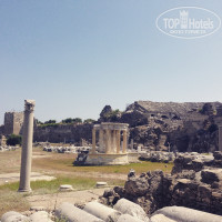 Вернулись утром 5 июля. Сразу скажу, что отель хороший! Мы покупали путёвку 1 взр. + 2 реб. (9 и 2 лет). Цена составила 97 000 за 11 ночей. Летели турецкой авиакомпанией библиоглобус. Ничего по-русски. Питание- будочка с сыром и напиток. Ехали до отеля примерно 1,5 часа. В отеле были примерно в 8 утра. Заселили сразу (это огромный плюс) так как отель был на тот момент ещё полупустой. Итак...еда-все очень свежее и вкусное. Всегда есть мясо, рыба, курица, картофель, макароны. Овощи, много разной зелени. Были какие-то салаты, но по виду мне он понравились, поэтому я их не пробовала. Ела только то, что мне знакомо. Ничего не могу сказать про детский стол, так как младшему ребёнку 2,5 года и в принципе она ест все. Но мне кажется, что всегда есть что выбрать и для детей младшего возраста, так как отдельно все жареное и отдельно тушеное или варёное. Видела кашу рисовую, но не пробовала. Есть различные хлопья и шарики, которые так любят дети, но мы ими не увлекались особо. Вообщем питание все как в стандартной обычной пятерке. Никаких изысков не наблюдала. Но!!! У всей нашей семьи даже живот ни разу не заболел, могу сделать вывод, что еда качественная. Мороженое 2 раза в неделю бесплатно у большого бассейна, там где стоит фруктовый лёд. Шарики мороженого платно 1 евро. Отдельный плюс-свой стол. Это очень здорово и удобно. Столы всегда чистые и ждущие именно тебя! На пляже еды нет. Только напитки. В других отелях была еда на обед и мы там полноценно обедали не уходя с пляжа. Пляж-с этим все отлично! Вход пологий и песок. Водичка чистая, пляж чистый. Когда читала отзывы что пляж далековато, думала ой какая ерунда прогуляться в отпуске с ребёнком в колясочке. Но оказалось что в 44 градуса идти вверх после подземного перехода к отелю с тремя млкрыми полотенцами и кучей игрушек в пакетах это мягко сказать... ну немного тяжеловато. Спа-ходили постоянно в сауну и иногда нам включали паровую. После это ныряли в крытый холодный бассейн. Но через несколько дней его закрыли по непонятным причинам. Фитнес-беговая дорожка 20 минут это просто необходимость после питания олл инкл. И их там 3. Это тоже замечательно. Анимация-она там есть. И игры дни есть и вечерние шоу есть! Но, на мой взгляд, эти ребята там работу работают, но не особо получают удовольствие от этого. Немного пассивные. Первые дни их просто было незаметно. Не хватает им всем какой-то харизмы. Повторюсь, это мое мнение. Зайдя в детский клуб, на нас с дочерью не обратили никакого внимания. Даже не поздоровались в ответ. Вечером с детьми танцы и все. Никаких вручений дипломов и т.д. не было. Но мы отель быбирали не ради анимации поэтому я совсем и не расстроилась. Уборка в номерах-честно не очень. Несколько дней подряд вообще к нам не заходили. Я не требую естественно генеральной уборки, но поверхностно хоть пол протереть то можно. Если подойдёте на ресепшн к Карине все вопросы будут решены!!! С этого отеля самим можно добраться до магазина Вайкики. Можно в большой, который в центре города. Можно прогуляться пешком до ближнего, но он в не котёл раз меньше. Если с отеля выйти, надо пойти налево никуда не сворачивая. После детского парка найдёте его. Этот магазин рядом с Макдональсом. Сами посетили музей под открытым небом. В маршрутке сказали Антик Сиде. Ехать минут 5-7. Брали экскурсию на корабле с пенной вечеринкой. 15 долларов взрослый, детский биле