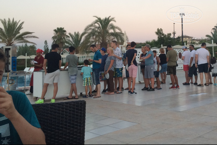 Грузь в баре , вонь тухлым пивом , в ресторане приносят грязную посуду( стаканы все залапаны, чашки грязные, тарелки с присохшей пищей) аппараты для кофе и сока не мылись никогда.в них вековая плесень в поддонах, персонал постоянно роняет посуду, везде осколки стекла, ребенок порезал ногу на горке стеклом( как оно туда попало???) номера убирают плохо, пол вообще не моют. Отношение персонала в ресторане жуть ( полный игнор) . Ничего не возможно допроситься, столы не убирают, приборов нет, персонал не знает даже 5 слов на английском, русском и тд. Только По-турецки.