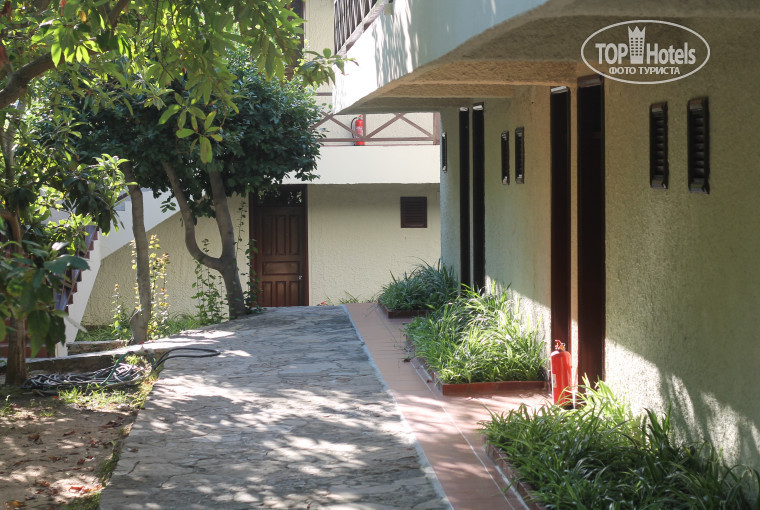 Территория красивая, затененная, много цветов, поют цикады, ящерицы постоянно снуют, змею видели один раз на камнях. Чудесный, райский уголок. Лаврушка растет. Огромные фикусы и шеффлеры. Все удобно расположено, все рядом. Территория небольшая, но очень душевная.