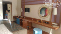Добрый день всем, кому интересно узнать более подробно об отеле. В целом отдых понравился. Однозначно отель для семейного отдыха и отдыха с детьми, молодежи будет скучно. Начну по порядку, в отель ехать от аэпопорта 2,5 часа. По дороге завезли туристов в 2 отеля, т.е. Наш отель не самый удаленный от Алании. В отель приехали в 10 утра, сразу нам модели браслеты, и предложили пользоваться всеми услугами отеля, но поскольку отдыхающих в отеле сейчас очень много, попросили подождать с заселением до 13 дня. Мы доплатили на ресепшене 30$ за номер с видом на бассейн..скажу честно, не пожалели, шикарный вид из номера. Что касается питания, мидий, устриц и креветок нет, отель не для гурманов. Стандартный завтрак- яичница,сыры, тостеры, овощи, фрукты,выпечка, хлопья, рисовая каша. Грязной посуды нет, некоторая посуда просто подзатерлась, но как писали грязные вилки, тарелки, такого нет, всё чистое. С 10 часов открываются бары на море и возле бассейнов, картошка фри, наггинсы, шаурма, гамбургеры, овощи, напитки, вода, пиво, перекусить есть что. На обед 2 вида супа пюре, вкус везде одинаковый, это конечно же не наш суп или борщ. Картофель, рис, вермишель, овощи, различные овощные рагу, рыба на гриле или баранина, тушеная индейка, курица. Из фруктов, яблоки, апельсины, арбузы, дыня, вечером- + сливы, абрикосы, персики, виноград, грейпфрукт. Что касается ужина, ассортимент гораздо шире, из мясного: вареная курица, тушеная, жареная, гуляш из говядины с овощами, индейка жареная, тушеная, овощи на гриле с шампиньонами, различные рагу из бобовых, рыба очень вкусная на гриле, была за неделю 3 видов. Баранина стейки на гриле. Честно скажу головными не будете. Пирожные приблизительно одинаковые на вкус, по разному украшенные, дети ели с удовольствием. Всего предостаточно. Номер просторный, уборка каждый день, изначально было в холодильнике 2 бутылки пива, кола, фанта и вода. Потом пополнялась только вода. Лифты работали исправно, но при полной заселенности отеля иногда приходилось ждать 1-2 минуты. Сам отель очень красивый, реставрация была в 2016г. Бесплатный интернет только на лобби. Платный 7$ в неделю. Бассейнов много, шикарные, шезлонгов хватает всем. Контингент на 90% турки, остальные русские и редко встречаются иностранцы. До моря идти 10 минут пешком не спеша с детьми, но мы сделали это 1 раз для эксперимента. Маршрутка возит от отеля до моря практически каждые 5 минут, неудобств не вызывает. Пляж конечно не соответствует 5*, очень все примитивно, заход В море не удобный, камни вперемешку с песком. 3 дня были волны, вода была серого цвета, даже заходить не хотелось. Но рядом через 30-50м пляж соседних отелей, там есть волнорезы, поэтому волны не было, и заход в море более ровный из. Мелкой гальки. Мы купались там, пройти 1 минуту не сложно. В номерах нет чайников и на этажах нет кулеров. Поэтому попить чай или кофе, только в столовой , либо в баре. Если кто хочет что нибудь купить, ездили сами на автобусе в канаклы, это 5-7 минут от отеля. Там есть. Небольшой рынок и торговый центр . Сладости, сувениры, полотенца, всё можно купить там. До Алании ехать гораздо дальше, поэтому кто не хочет тратить свое время , значит вам в канаклы. Недалеко от отеля тоже есть немного ларьков с вещами, скидками, сувенирами, но ценник выше. Проезд на автобусе стоит 1$ за человека. Показывает браслет водителю и вам остановит возле 