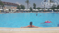 Отдыхали с семьей с 14 по 23 июля 2017 года. Что хочу сразу сказать - не верьте отрицательным отзывам! Россияне, стыдно и жаль вас, что отсутствие одного полотенца в номере или облитые водой сланцы могут испортить вам весь отдых! Читаю и стыдно от некоторых отзывов.... Приехал быдло васька пупкин из мухосранска, оплатив pool анекс корпус и гордится тем что со скандалом и руганью добился бесплатно размещения в основном. Позорище. Пример детям просто. Отель огромный, туристов более 2 тыс. Персонал работает на 100%. Чисто всегда! Уборка в номере каждый день. Выпитый стаканчик и двух минут не простоит, унесут. Мы жили во втором корпусе. Поднялся по лесенке и уже у главного бассейна, потом рецепшн, далее мини базар и потом столовая. Анимация супер! Весело, не навязчиво! В Турции третий раз, всегда берем отели подобного среднего уровня. Это не фешенебельный отель! Купив тур на 10 дней на семью за 100-120 тыс, думают наши сограждане, что им пятую точку будут крахмалить. Спуститесь на землю и ловите кайф от солнца и моря. А не грызитесь за отсутствие одного полотенца в номере. Питание отличное, но очереди. Море сказка, мелко и песочек. Не понравился отельный гид Азат. Но это в каждом отеле такие персонажи - красиво говорить и содрать побольше денег с туриста. Мы экскурсии берем в уличных турагенствах.