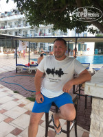 Короче о приезде, приехали почти в 22:00 по местному, нас встретили, покормили, предложили 2 номера на выбор, выбрали на втором этаже(немного отблагодарил за такой приём)в номере двухспальная кровать, туалет, душ, кондер, телевизор, балкон. Все работает, кондер хорошо холодит, к номеру вопросов нет, убирали 4 раза за 7 дней, полотенце не меняли. Теперь о еде(о которой все пишут есть нечего) на завтрак всегда есть хлопья нескольких вариантов, вкусные булочки, салыты(они своеобразные) огурцы, помидоры, каша на молоке,кабачки (и ещё много всего)кофе, чай и сладкая вода из апарата . Бар у бассейна работает с 10, есть пиво, вино(красное и белое), джин, местная водка. С местной выпивки кроет не очень, дают в маленьких 100 граммовых стаканчиках. Анимация нормальная для этого уровня, добрые, детей занимают и взрослым скучать не дают Джамал и Бобо и всегда подскажут что и как. Есть хамам, парная, джакузи, это все бесплатно, но если хочешь чтобы хамам был полноценным с массажем, маской и скрабом то это 20 долларов. Есть проблема с нехваткой лежаков на бассейне и на пляже(про него чуть позже) просто проснитесь в 6, займите лежак около бассейна , дойдите до моря освежитесь и займите там лежак. Сам пляж не большой, мелкая галька и камни. Плавают мелкие рыбки и делают вам типа пилинг))) есть пару городских пляжей не подалеку, там добрые и гостеприимные турку могут вас угостить вкусностями ))) так на обед тоже еды масса, супчик, макароны, рис, курочка, печенку в кляре давали несколько раз, колбаса местная, но простая и съедобная )арбузы сливы. Голодными точно не останетесь и будете сыты не переживайте . Вообщем мне понравилось, солнце, море, бассейн и местный колорит. Экскурсии не бойтесь брать на улице, там дешевле и возят в теже места только дороже. Очень рекомендую экскурсию на яхте мы сторговались за 13 долларов.А да, море в 5 минутах.