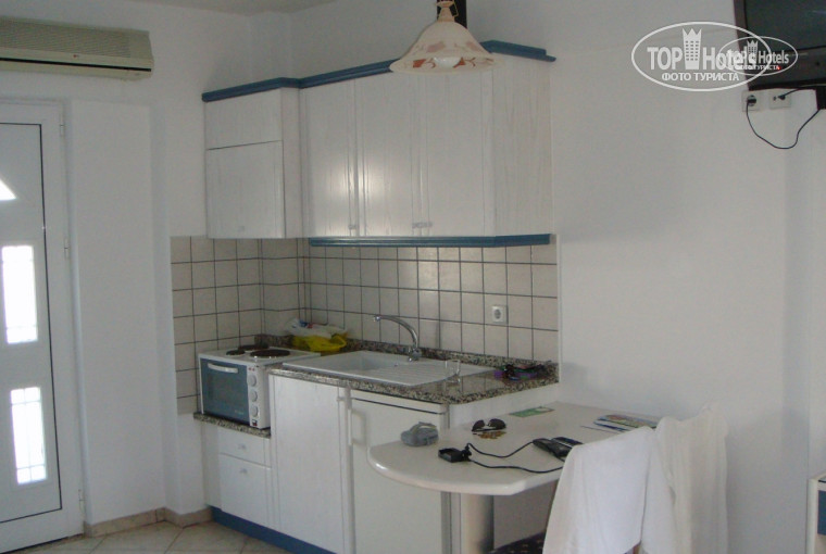 Мы поселились в номер студию, всем советую, большая комната с кухней! Очень удобно. На месте доплатили за нее за 15 дней 70 евро. Простые номера маленькие, но если об этом не заморачиваться, то все будет супер! в каждом номере стоит одна 2-х спальная и 1-на спальная кровати, холодильник, сейф. Все уютно и красиво. Уборка происходит каждый день, полотенца через день. Есть основное здание, а так же корпуса, все близко к морю 2 минуты ходьбы. Море редко бывает спокойно, всегда есть волнение.Мне это наоборот очень нравилось)