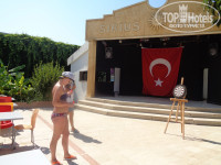 Как и обещала пишу отзыв о своем отдыхе.Находились в отеле с 16-25 июля. От Тез тура. прилетели без задержек в 4 утра. Прошли паспортный контроль минут за 40,потом получили чемоданы и прошли в микроавтобус. Ехали приблизительно около 1 часа,мы были первые, по пути потом еще 2 семьи повезли в другие отели. По приезду в 6 утра,одели браслеты,переоделись в багажной комнате и пошли на море. Сразу говорю купальники и воду,еду берите в ручную кладь! Завтрак только в 7часов 30 минут. Сходили на море, на завтрак, потом переоделись в купальники и пошли в бассейн.. Большое спасибо Хатуне которая очень вежливая и культурная ,сразу после обеда пригласила получить карточку от номера и все объяснила. Номер на четверых небольшой,кровати стояли впритык от стены до стены. Нам хватало места. В номере все работало исправно, кофе,сухие сливки и мыльные принадлежности все приносили.Минус очень темно в туалете,зачем там увеличительное зеркало не знаю.....накрасится не получиться, горят диодные лампочки.И еще минус полотенца меняют через 5 дней! Мы не знали....И через 3 дня как и везде в других отелях полотенца бросили на пол. К нам пришла горничная молодая девушка и предупредила,больше так не делать.Кабинки в душе лучше плотно не закрывать,может заклинить дверцу. По номеру все. Территория отеля - не большая, уютная ,много плодовых деревьев. Можно найти тенек и посидеть,правда много опавшей листвы и ее не убирают. Бассейны чистые,приятно плавать и взрослым и детям. У детишек свой бассейн с маленькой горкой. Все детки на виду!