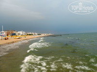 Пляж ежедневно (точнее ежеутренне) убирается и за порядком ведется постоянный контроль. Можно загорать и у самой кромки моря, но устанавливать свои зонтики, как в Испании, запрещено и за этим следят. Песок мелкий золотистый, вход в море очень пологий и чтобы зайти по горлышко, надо пройти метров 50. Море очень чистое и теплое, - в первую неделю июля температура была 26-27 градусов.