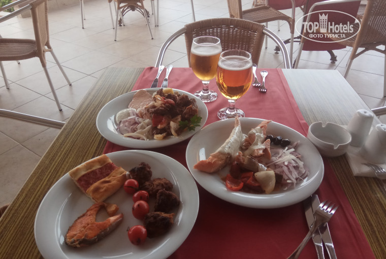 Здравствуйте,опишу свои впечатления об отеле ,начну с плюсов приехали в отель в 10 утра ,позавтракали и сразу дали номер ,номер мне понравился ,жил на первом этаже в домике стандарт , кондиционер не шумел ,как некоторые пишут ,балкончик в каждом номере где можно купить ,душевая кабинка была так себе ,но в целом номер неплохой так я первый раз в отеле за границей мне понравился .Море очень чистое ,прозрачное ,плавают маленькие рыбки которые кусают за ноги если есть ранки ,но это если стоишь на месте в море больше минуты .Пляжу ставлю твёрдую пятёрку.Пирс хороший для захода в море ,шезлонгов всегда хватало во сколько бы я не пришёл . Территория не большая ухоженная ,всё рядом ,красиво .По поводу еды и алкоголя ,АЛКОГОЛЬ как бы помягче сказать НИОЧЁМ ,но это беда как я понял всей Турции ,алкоголь разбавленный потдельный ,покрайней мере бесплатный ,платный я не пробовал по 6-12 евро за бокал .Пиво можно пить литрами не пьянеешь нулёвка будто .На второй день решили попробовать напиться пили теккилу ,выпили меньше пол литра на двоих ,так в жизни я никогда не травился ,мы с девушкой блевали всю ночь ,а она ещё и на следующий день я пью часто такого похмелья в жизни небыло ,на этом наше знакомство с алкоголем в отеле закончилось.Рекомендую лучше купить пару бутылок в дьюти фри не ,непожелеете ,в следующий раз так и сделаю .Еды в отеле достаточно ,но всё мясо с одними и теме же специями на 4 день уже блювать от него хочется ,супы все специфические не вкусные ,на третий день хочется нормального лёгкого супчика ,на бульёне ,желудок вообще перестаёт работать ,у меня в голове крутится как людям не надоедает эта еда ,но еды много .Фрукты арбуз водный не сладкий вообще неочём ,дыни кусок откусил и выплюнул есть невозможно поверте я не преувеличиваю ,сливы вкусные .Иногда готовят коронные блюда или каждый ужин просто иногда поздно приходил ,свинину на вертеле ,десерт из мороженного с вафлями ,было вкусно .Давали крабов и раков один ужин ,мясо в крабах не много ,ещё попробуй его выковори ,раки ещё более менее вкусные .Про анимацию ,детская на высоте взрослая скучная ,сидели с девушкой и скучали вечером музыка плохая ,из соседнего отеля доносилась хорошая музыка свето шоу ,мы всегда хотели к ним ,а не тухнуть в нашем отеле ,но хотя аниматоры старались молодцы, вытаскивали танцеватьдаже тех кто отказывался Вообщем этот отель не для молодёжи,кто хочет весело отдыхать . Взрослым думаю понравится .Открывают бар с 00:00 с русской музыкой ,но я трезвым танцевать не люблю ,а в баре пить без толку , поэтому туда не ходил ,забыл сказать соки в отеле тоже разбавленны водой ,фрешы по 2$ это вообще неуважение к отдыхающие в Турции этих апельсинов на каждом дереве растут а они по 2$ продают .Персонал отзывчивый веселый .В отеле есть спа за 35 долларов неплохо но очень дорого .Вообщем кому не надоет еда без супа ,и неважен алкоголь,или лучше купить его в дюьти ,то рекомендую этот отель .