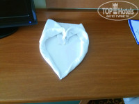 Заселение-размещение-клининг: приехали в отель примерно в 10:30, на завтрак не успели, но спокойно перекусили в снек баре. Заселение в 14:00, это всем известно. Мы не растерялись, переоделись и пошли купаться. Вещи стояли на рессепшине, под присмотром. Номер отличный! Чистый, не вонючий, светлый, 2 больших, 2 маленьких и 1 для пола полотенца. Меняются ежедневно! (но для этого необходимо кинуть грязное полотенце на пол). Постельное или раз в 3 дня или в 4 меняют, мы не свинки, лично я не замечала когда)) Пополняется гель, шампунь, мыло, кондиционер для волос, лосьён для тела по мере его использования. Мы нашли общий язык с клинингом, всегда "ХИ-ХИ, ХА-ХА, здравствуйте, спасибо" и видимо нас радовали лебедями и цветочками. (см.фото)))