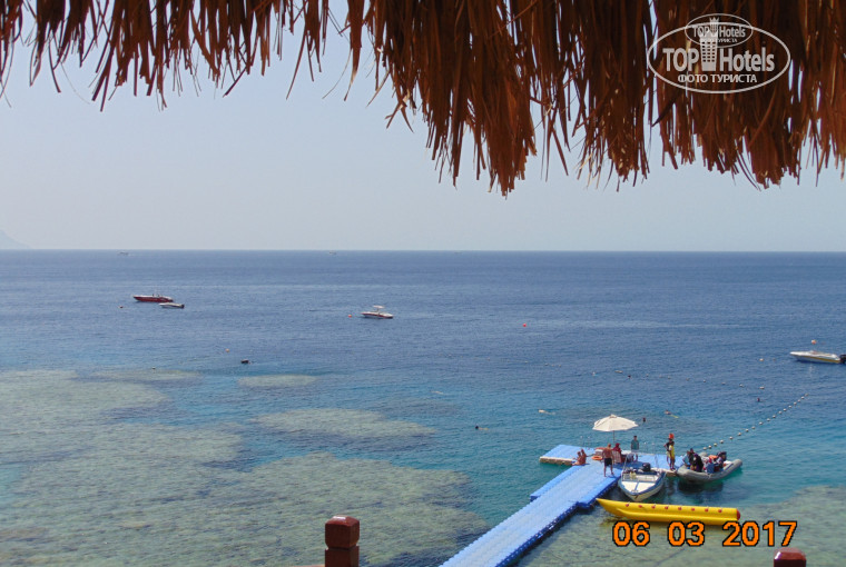 6. ПЛЯЖ многоуровневый, места было полно, несмотря на полную загрузку отеля, т.к. основной процент отдыхающих - местное население, а из них единицы доходят до моря, остальные сидят по номерам и больше предпочитают бассейны. Понтон короткий. Море как всегда - сказочно теплое и красивое! Риф - отдельная тема, просто шикарный, в виде островков и лагун, с большим разнообразием обитателей - мелкую рыбу всю не буду перечислять (сержанты, бабочки, пикасо, попугаи, губаны, барабульки и т.д. ), рыба флейта (единороговые), иглобрюхи (фуга), кефаль, летрины, рыбы-ежи, мурена, крылатки, морской огурец, скорпена, рыба-камень, барракуды, голубой скат, скат-орляк, черепаха, рыба наполеон. Очень много крупной рыбы приплывает рано утром, часов в 6-7, вечером к дальним буйкам приплывают наполеоны, мы видели 1,5 метрового и поменьше. Если прийдете на пляж до 8 утра, охрана купаться разрешает. Кстати, в период 11-15 в море может быть отлив. Вообщем от моря и рифа мы в восторге!!!