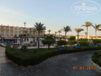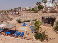 5. ПИТАНИЕ Те, кто отдыхал в отеле не первый раз, говорят раньше питание было лучше. Но мы не отдыхали раньше, поэтому даем свое мнение - нормальное, голодными не будете, но и излишеств нет. Завтрак - яйца вареные, омлет, фасоль, овсянка, сосиски, йогурт, джемы, творог, сыр, огурцы, помидоры, блинчики, слойки (очень вкусные), чай (только черный), кофе. Обед и ужин - рис, овощи на пару, горошек тушеный, картофель запеченый, пюре, макароны, фасоль в томате, курица, рыба (скумбрия, тунец), печень, говядина, салаты, оливки (не каждый день). Очень маленький ассортимент овощей - огурцы, помидоры, перец (два раза за 12 дней), капуста синяя и пекинская. С фруктами такая же ситуация - финики, апельсины, грейпфрут, дыня/арбуз (не каждый день), банан (2-3 раза за 12 дней). Фрукты все подаются резанные. Напитки в свободном доступе - это чай/кофе только на завтраках, соки а ля "юпи" - всегда, остальные напитки за обедом и ужином приносят официанты (совет - в начале отдыха подружитесь через ($) с каким-то официантом и будет вам счастье - и столик вам накроют, и напитки быстрее принесут). С питьевой водой проблем нет - вода в бутылках 0,6л в свободном доступе в любом баре. Бары, их три - на главном бассейне, на пляже и Chill Out под ресепшн (сдесь кстати подают соки из паков). Алкоголь - местный. В течении дня дают мороженное и чипсы. В баре на пляже с 12.30 до 17 дают бургеры и сэндвичи с тунцом (вкусно) + картоха фри. Еще дельный совет - раздобыть большие пластмассовые стаканы и ходить с ними на пляж, т.к. в баре на пляже напитки подаются в одноразовых стограммовых стаканчиках, это очень неудобно. Есть итальянская а-ля карта (мы не ходили). Как писала выше, можно пользоваться барами второй линии.