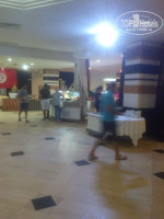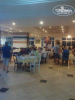 Вот голодным точно не останешься!!! даже при таком большом количестве постояльцев. Работники ресторана, все бегают выносят новые блюда. Ресторан разделен на 2 части и за стеной так же есть раздача, где намного меньше людей и нет очередей. Были и такие моменты что люди вставали вне очереди... ну их дело. После 20-го июля народа стало заметней меньше и очередь надо было еще поискать))))) Давали рыбу разную(тунец, местная и еще много разной но не понятно какая), баранина, говядина, кролик, перепелки, курица, мидии, креветки. Картофель, макароны, рис, кус-кус, всевозможные овощи и салаты. все заправки стоят отдельно. Из фруктов( арбузы, дыни, персики(круглые и плоские), нектарины( круглые и плоские), сливы, виноград, апельсины) Очень вкусные сладости и один раз давали мороженое. Вино - красное , розовое, белое(очень не вкусное). Вода с газом и без. "Соки"- Юппи разбавленный безумно сладкие и такие же лимонады. Пиво отличное светлое. Из крепкого алкоголя только текилу пили серебряную. золотая с ужасным привкусом. О ну дефицит соли это маст хев у них))) Приходя на завтрак/обед/ужин ищите стол с солью))) Завтрак с 6 до 10, обед с 12.30 до 14.00 , ужин с 18.30 до 21.00 (или 21.30) мы всегда приходили к открытию, тогда и стол легче найти. Так же никаких денег официанту и все равно столы украшали, наливали вино и приносили пиво. Да тарелки пока ты ешь никто не уносит, если это кому-то принципиально. И чистота хромает, много грязных столов и под столами... минус отсутствие табличек с названием блюд. Днем еще дают попкорн и вообще пицца очень вкусная у них