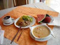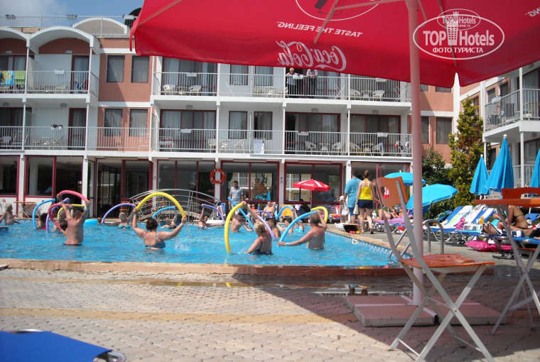 Начну с того, что приехали мы в 12.30. Нам сразу надели браслеты и мы смогли пообедать в отеле. А заселили нас в номера ближе к 15 час. У нас было два номера на 3-м этаже, но один номер мне сразу не понравился. слишком маленький. и мне поменяли его на 1-й этаж в другом крыле. Там мне понравилось. Номера просторные и чистые. В отеле вообще очень чисто, уборщицы работают с утра до вечера. Респект. Полотенца меняют каждый день, постель раз в три дня. Питание, я считаю. очень хорошее для не очень дорогого отеля. В отеле два бассейна, взрослый и отдельный детский. Около детского бассейна качели. Лежаки стоят в один ряд, их не хватает, но рядом с бассейном целая гора дополнительных лежаков, которые можно поставить во второй ряд. Мы ставили под дерево. Команда аниматоров - большие молодцы. В 10 час утра объявляется вся программа анимации по часам, все это на немецком, русском, английском, также, как и вся анимация. Водная гимнастика на английском, но все понятно. На вечерней анимации мы не были ни разу, поэтому сказать ничего не могу. До пляжа идти минут 7 по деревянному настилу через дюны. У меня нет претензий к отелю, все очень достойно. Но вокруг отеля очень шумно. Особенно много шума от детского лагеря Хэппи лэнд. Да и от ближайших отелей тоже. Это для меня жирный минус. Но в целом отдых удался.