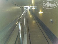 Бассейнов в отеле три. Крытый находится на -2 этаже (перед началом подземного перехода к морю как раз), большой, красивый, над ним нет перекрытия, так что там аж три света высоты и сверху стеклянный купол, отчего в помещении светло, тепло и много зеленых растений. Глубина большая, до 2 м.