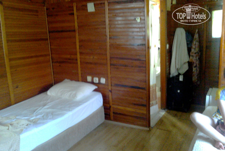 В номере ничего не было, кроме двух односпальных кроватей, маленького не закрывающегося шкафчика для одежды, тумбочки как в старой больнице, малюсенького старенького телевизора и мини холодильника, который не морозит. Ни стульев, ни стола, ни кресла... Мы жили в отдельном бунгало. А вот наши друзья жили в спаренном бунгало. Так у них не было ни тумбочки, ни холодильника и один раз к ним заходила в гости большая крыса - 30 см длиной без учёта хвоста!!! Благо в этот момент моей подруги не было в бунгало, а только был её муж, поэтому он не сильно испугался!!! Кстати, кондиционер у них еле дул и вонял!