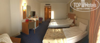 Звукоизоляция в номере ни-ка-ка-я. Вот её просто нет. Вы слышите о чём разговаривают люди в соседних номерах, какой канал на телевизоре они предпочитают больше, и вообще, знаете о своих соседях всё. А так же, по шагам за дверью можете определить: кто, в каком направлении, и с кем идёт. Но лично для меня отсутсвие этой самой звукоизоляции - мелочь; ночью особо никто за стенами не шумит, и хорошо. В минибаре вода, кока кола, фанта. Бутылки почему-то были открыты, вроде и полные, но открыты. Вопрос: наполняют они бутылки сами, из баров (и если так кто-то вообще делает, то моют ли эти бутылки вообще(ситуация на самом деле бред)), или же оставляют недопитое от прошлых жильцов?!... не понятно, пить не стала. В ванной комнате из средств для мытья было два маленьких геля для душа, ни шампуня, ни кускового мыла, уж тем более зубных щёток - не было. Еще, две шапочки, два спонжика с двумя ушными палочками. Но есть два диспенсера, предположительно с жидким мылом, не пользовалась, не знаю. Уходовые средства всегда беру с собой, поэтому содержание этой ванной комнаты особо не парит. Единственное что, не брала с собой в этот раз фен (т.к. в прошлые разы фены в отелях были, и ими даже можно было высушить волосы), а зря, фен доисторический, мощность никакая, высушить можно разве что очень короткие волосы, и то, долго придётся возиться.