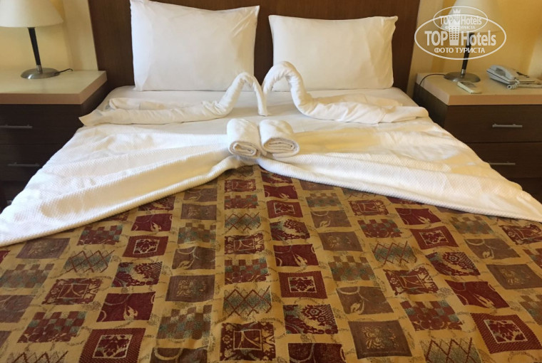 Все на слабую троечку...Приехали в отель в 13:30, заселили только в 14:30, это очень раздражало, так как мы были очень усталые с ночи. Номер дали наверно хороший, так как был вид на море, но сам номер очень подусталый, уборка тоже на слабом уровне, пол они по-моему вообще не моют и если мы правильно поняли по понедельникам они не убираются. Еда тоже не блистала изысками, кроме того муж мой очень серьезно отравился, последние 3-и дня были испорчены этим фактом и никакой активированный уголь не помогал, что именно дало такой эффект не было выявлено, но думаю частично дизентерия, так как попадалась грязная посуда. Море, пляж, бассейны сильных претензий нет, очень все красиво, но огорчал факт того, что все лежаки были заняты и чаще всего люди их занимали на весь день своими вещами, при этом сами на них не появлялись и отель с этим никак не боролся. Территория отель большая, но не очень ухоженная и не очень чистая, у нас мусорный пакет висел на дереве возле номера весь наш отпуск и думаем пока он сам не упадет его никто от туда так и не снимет, возле номер на земле вонял уже мусор, пока мы не высказали претензию его так и не собирались убирать. Про цивилизацию такую как интернет и телевидение они не знают, русских каналов всего два, интернет только в лобби и это слабо можно назвать интернетом. И последнее забудьте по теннисный корт, футбольное поле итп., да они есть, но инвентарь весь в таком состоянии, что даже при особом желании поиграть не получиться.